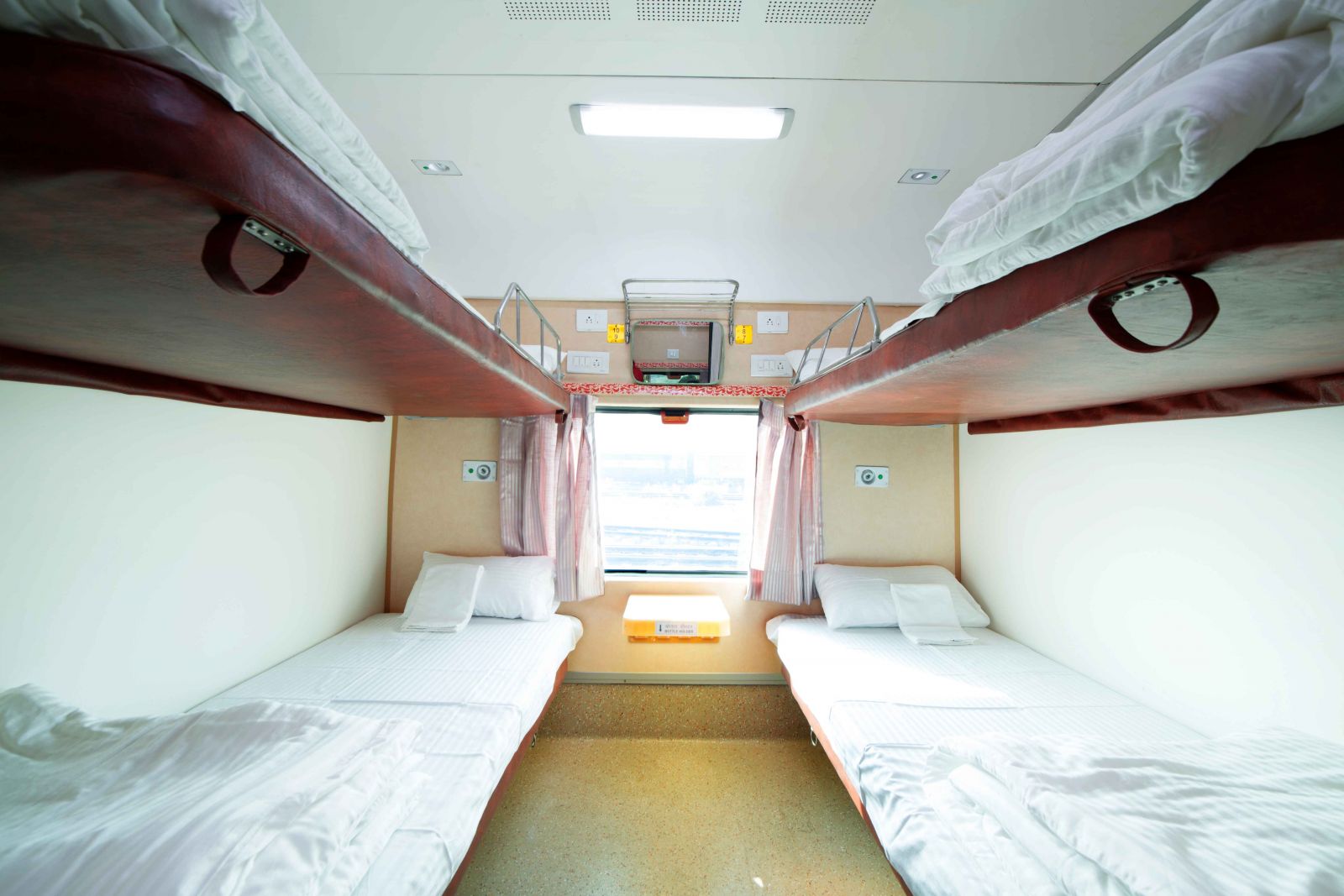 AC First class Coupe has cabins with 2 berths (one lower & one upper). The cabins can be locked from inside as it has a sliding door